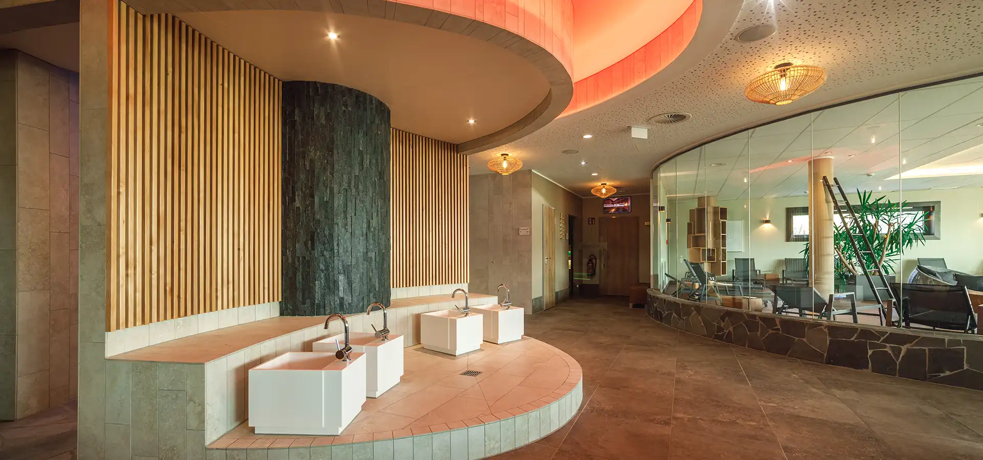 Unser Laconium „Sinnes-Sphäre“ sorgt mit milden Temperaturen für eine sanfte Erwärmung des Körpers. Entdecken Sie auch unser Aromadampfbad, das mit angenehmen Düften Ihre Sinne verwöhnt. Jede unserer Saunen bietet ein einzigartiges Erlebnis und trägt zu Ihrer vollkommenen Entspannung bei.